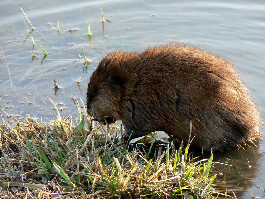 "Muskrat and delicious grass" by Benimoto via Flickr, Creative Commons Attribution.