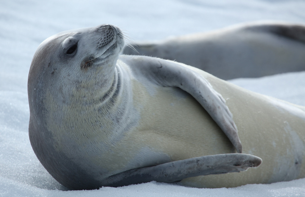 "Crabeater Seal in Pléneau Bay, Antarctica" by Liam Q via Flickr, Creative Commons Attribution ShareAlike.