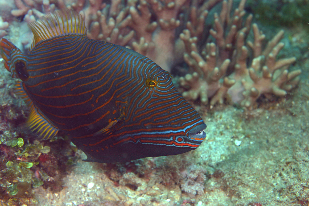 Die Art Orangestreifen-Drückerfisch gehört zur Gattung , Balistapus.